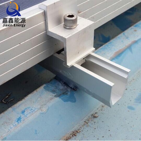 针对梯形彩钢瓦屋面,嘉鑫能源推荐采用无夹具方案,即U型导轨支架。